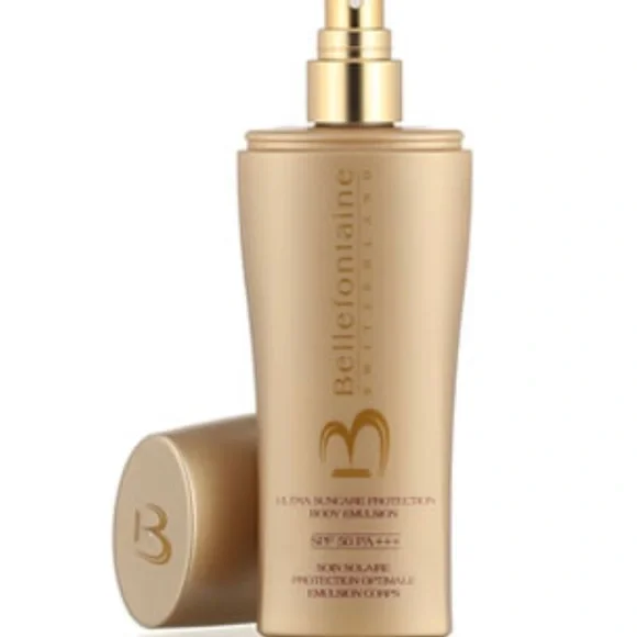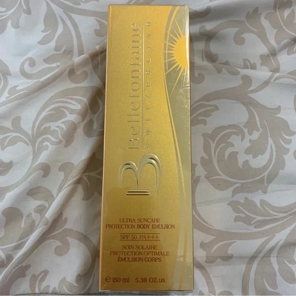Bellefontaine Switzerland Ultra Suncare Protection Body Emulsion 150ml/5.38ozExp 2026 New & SealedThanks to its lightweight and easy to spread texture, this high protection sunscreen for the body protectively envelops the skin to effectively fight against damage caused by sun rays. The emulsion contains high performance UVA/UVB filters as well as a selection of cutting-edge botanical ingredients, which help provide complete anti-aging protection in terms of elasticity, firmness and miniaturization.