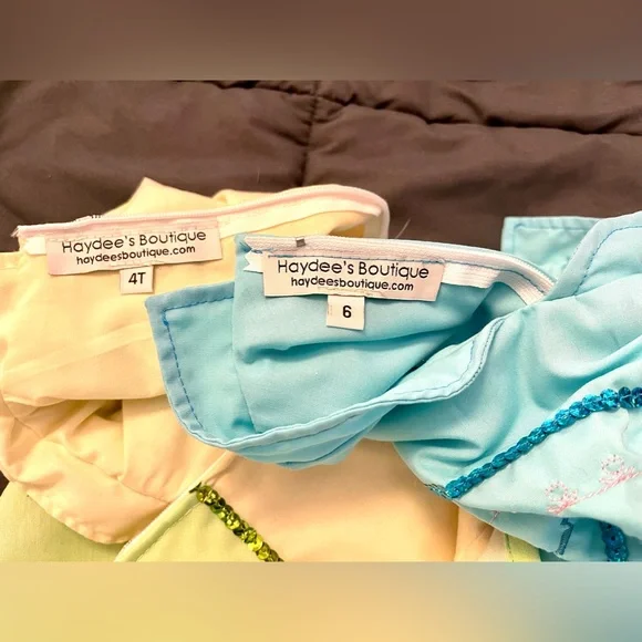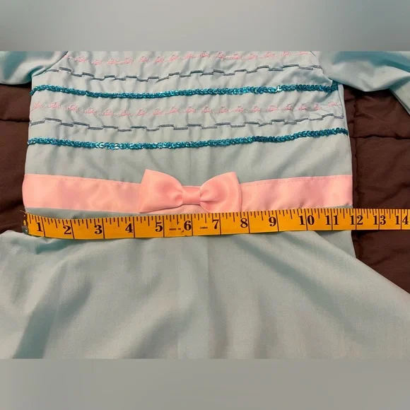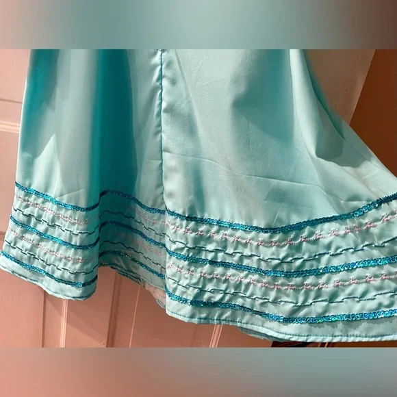 PERFECT sister costumes for Halloween! HANDMADE (not by me) Young Elsa and Young Anna nightgowns as seen at the start of Disney’s Frozen and Frozen II. Purchased from Etsy and worn once for photos. Elsa:Size 613” across chest12” across waist31” lengthAnna:Size 4T12” across chest11” across waist28” lengthThin cotton, might need a slip under it, or something warmer in cooler climates. Zipper at back, ending a little bit before the top to avoid pinching necks or hair. No stretch. Smoke-free/cat-friendly home. Please ask if you have any questions!
